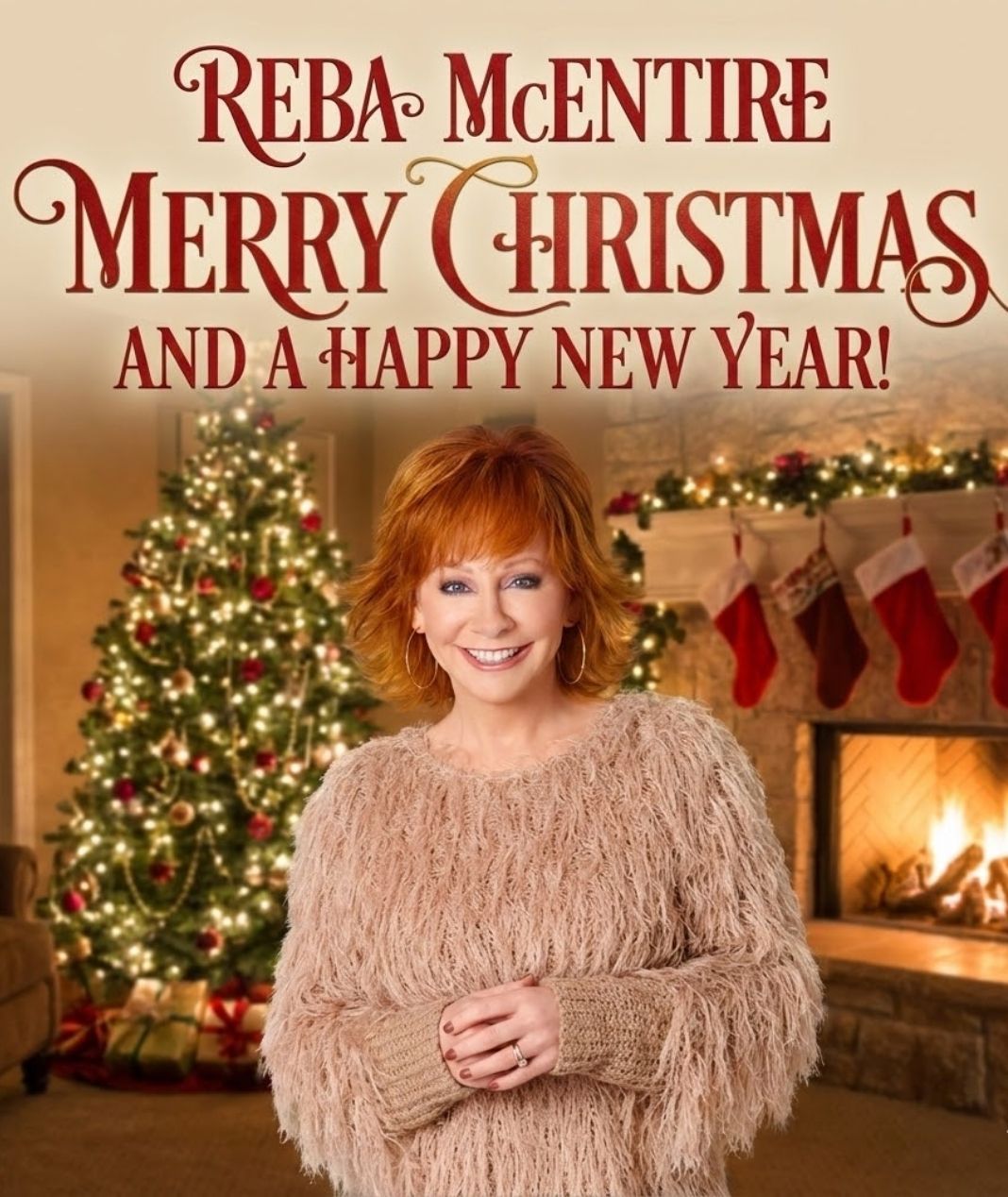 This holiday season, Reba McEntire sends a heartfelt wish to fans everywhere — Merry Christmas and a Happy New Year. It is a message that arrives without fanfare or formality, yet carries tremendous weight because of who it comes from and how it is offered. Reba’s words feel familiar, steady, and deeply sincere, much like her voice itself, which has accompanied generations through joy, hardship, and moments of quiet reflection. Her holiday greeting is not simply a tradition repeated year after year; it is an expression of genuine connection, shaped by a lifetime of understanding what music, faith, and family truly mean.