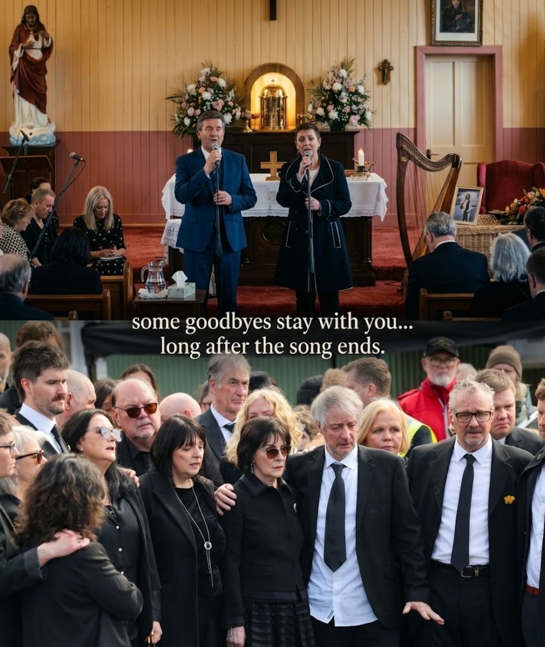 As the service moved forward in stillness, Daniel O’Donnell rose from his seat. There was no urgency in his movement, only a quiet resolve. Beside him stood Majella O’Donnell, her presence steady, her expression reflecting the shared weight of the moment. Those gathered sensed immediately that something meaningful was about to happen, and the already hushed space grew even more still.