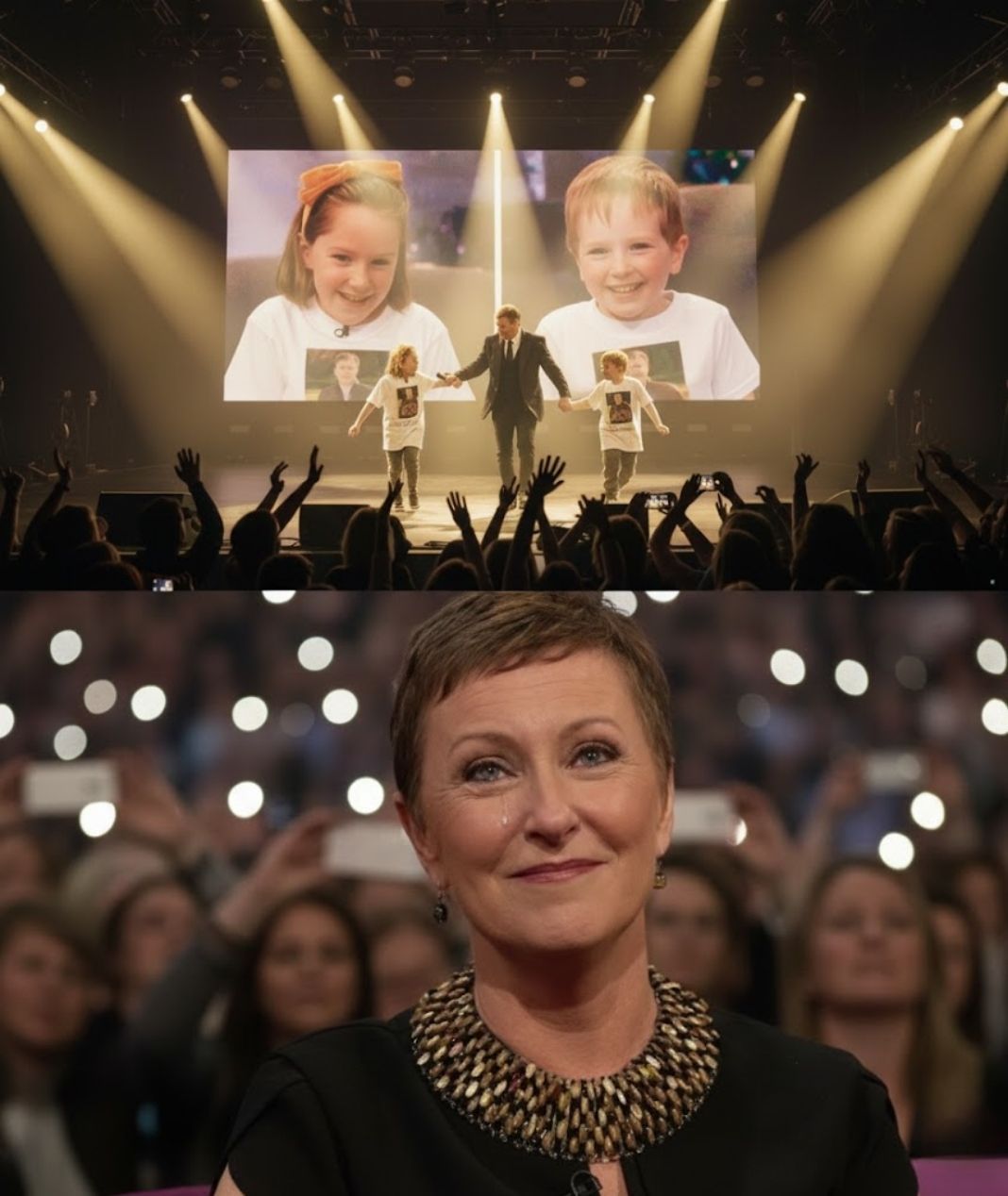 What made the moment especially powerful was its simplicity. There were no dramatic gestures, no swelling music to cue emotion. Instead, the emotion arrived naturally. Smiles spread across the audience. Some wiped away tears. Others simply watched in silence, aware that they were witnessing something rare — a moment not designed to be remembered, but destined to be.