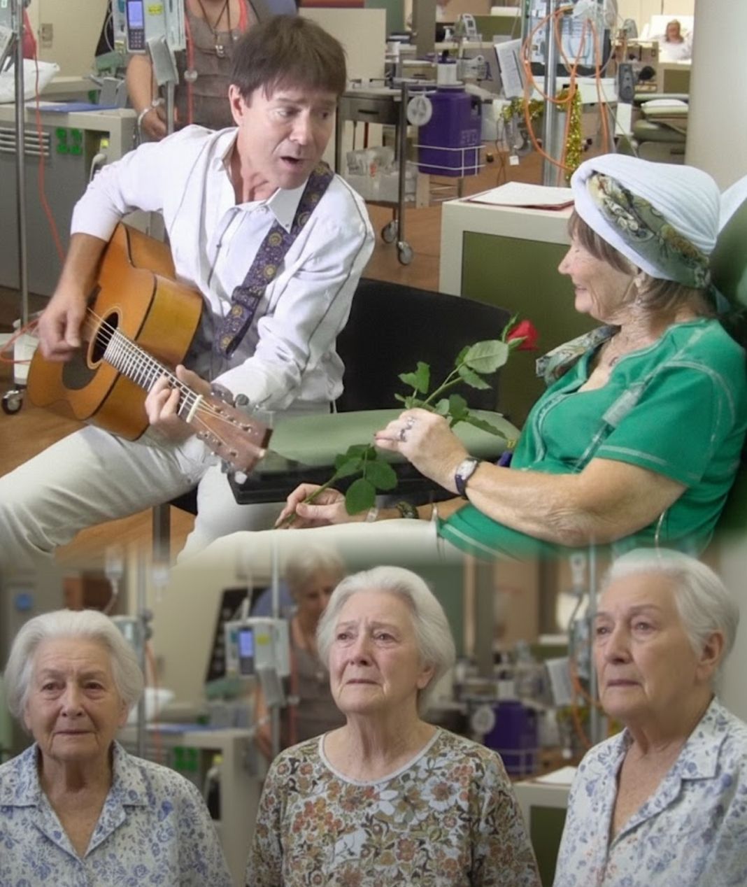 What made the moment so powerful was not fame, but intent. Cliff did not perform for the room — he performed to the woman. Every lyric landed gently, like reassurance rather than entertainment. In that instant, he was no longer a global icon. He was a man offering music as comfort, dignity, and companionship to someone who needed all three.
