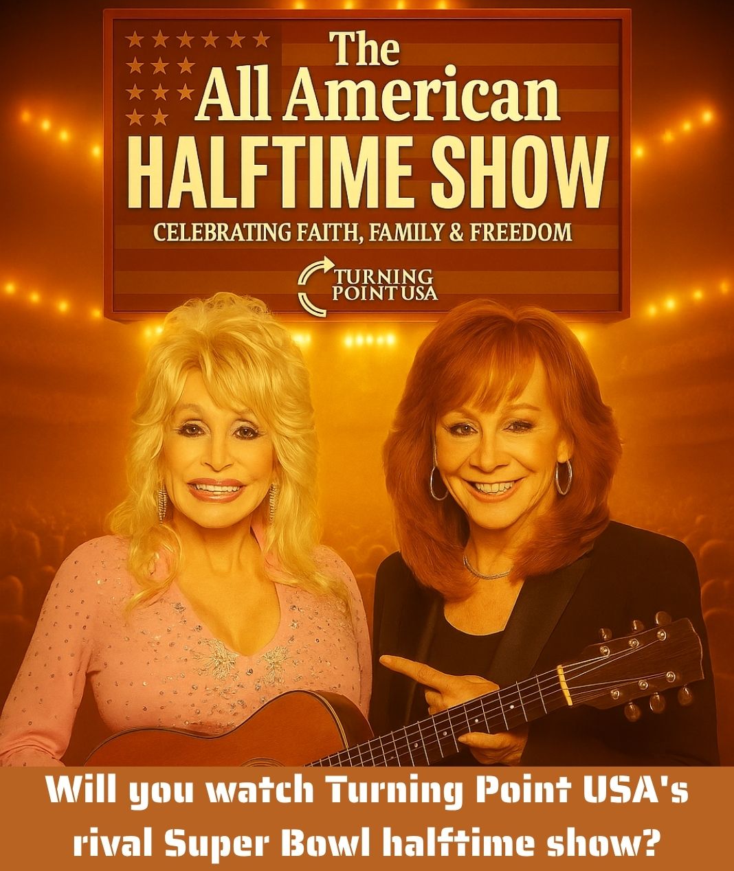Nashville, Tennessee — In what’s being hailed as a landmark moment for both country music and American culture, two legendary icons — Dolly Parton and Reba McEntire — are officially teaming up for “The All-American Halftime Show,” a bold, faith-driven alternative to the Super Bowl 60 halftime event. The announcement has already ignited nationwide excitement, promising a once-in-a-lifetime celebration of country pride, unity, and the enduring soul of American music.