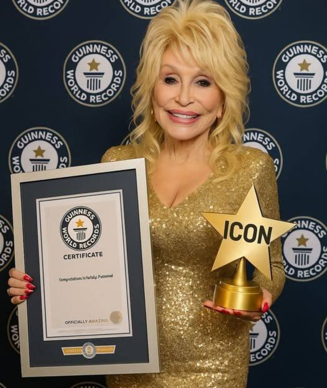 In a special presentation held earlier today, Guinness World Records honored Dolly with the ICON certificate, recognizing her lifelong contribution to music, philanthropy, and culture. Clutching the framed award, the 79-year-old superstar smiled that familiar Dolly smile — humble, radiant, and full of gratitude.