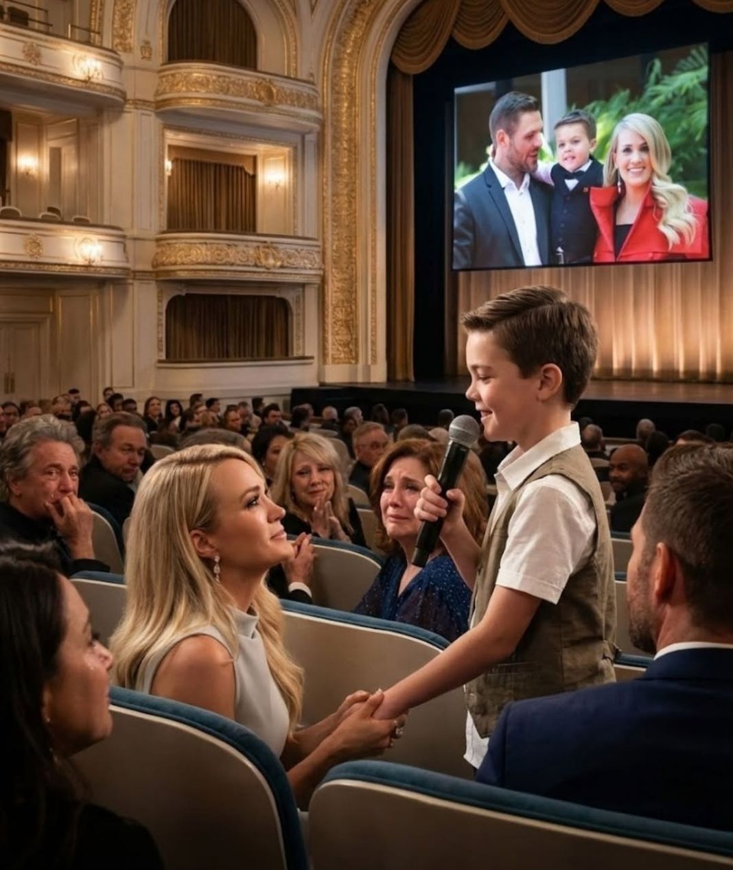 There are moments in music that do not arrive with fireworks or headlines, but instead unfold gently, almost unexpectedly, and stay with us far longer because of that restraint. One such moment arrived recently when Isaiah, the son of Carrie Underwood, made his first public singing debut. It was not framed as a grand launch or a carefully orchestrated introduction. It was simple, sincere, and deeply human — and that is precisely why it resonated so strongly with listeners around the world.