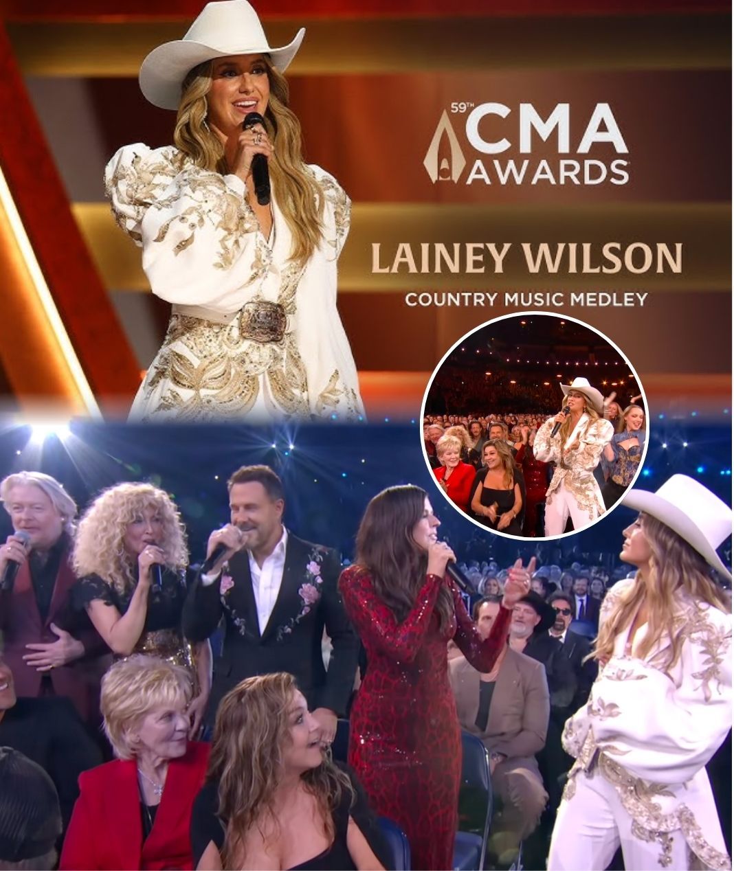 The 2025 CMA Awards delivered many unforgettable performances, but one moment towered above the rest — a dazzling, heart-pounding medley by country music superstar Lainey Wilson, who proved once again that she is not merely a rising star, but one of the defining voices of modern country music. Her tribute to the genre’s most iconic songs brought the crowd to its feet, united generations of fans, and became the emotional centerpiece of the entire night.