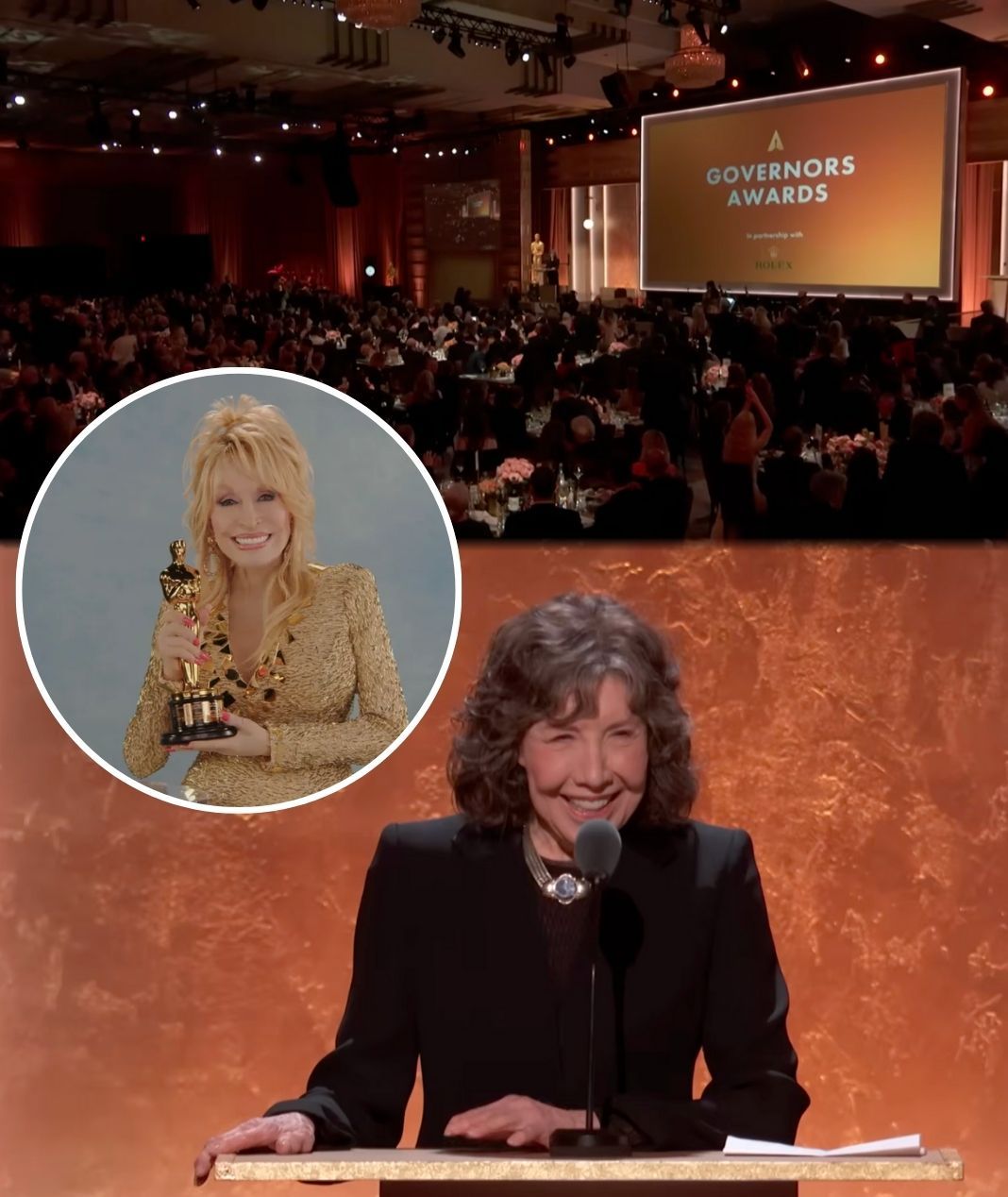 Hollywood, California — The 16th Governors Awards delivered one of its most emotional and heartfelt moments when legendary actress Lily Tomlin stepped onto the stage to honor her longtime friend and collaborator, Dolly Parton, as she received her Honorary Oscar. The pairing felt natural, iconic, and deeply moving — a tribute from one trailblazer to another.