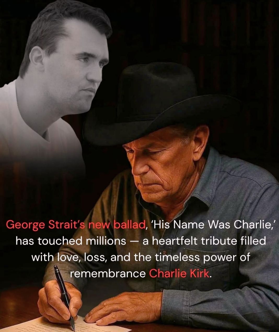 Country music legend George Strait has released a deeply emotional new ballad titled “His Name Was Charlie,” a moving tribute to the late Charlie Kirk, whose legacy of faith, conviction, and compassion continues to inspire millions across America. The song, filled with tenderness and quiet strength, has already struck a chord with listeners — many calling it “one of the most powerful performances of George Strait’s entire career.”
