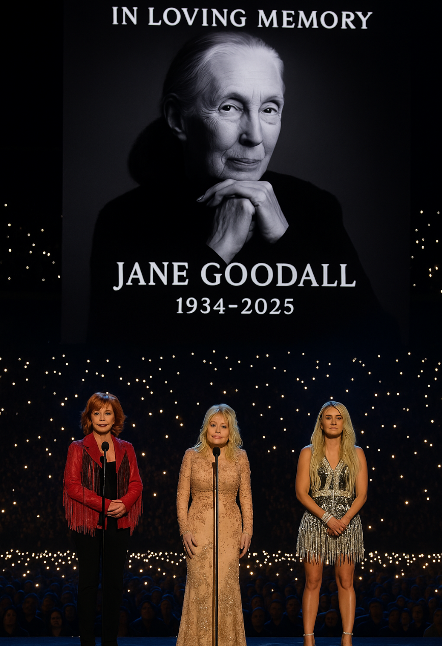 In one of the most moving musical moments of the year, three country music legends — Dolly Parton, Reba McEntire, and Carrie Underwood — joined voices to honor the life and legacy of the late Dr. Jane Goodall, the world-renowned primatologist and conservationist whose groundbreaking work forever changed humanity’s understanding of the natural world.