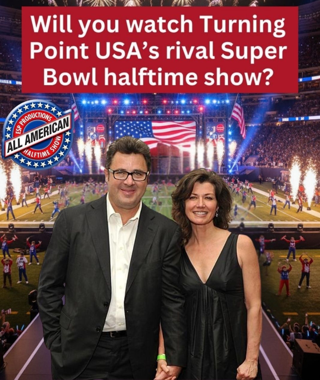 Nashville, Tennessee — In a touching announcement that has already captured the nation’s heart, beloved duo Vince Gill and Amy Grant are set to open “The All-American Halftime Show,” a powerful new event that offers a faith-filled, patriotic alternative to the traditional Super Bowl 60 Halftime Show.