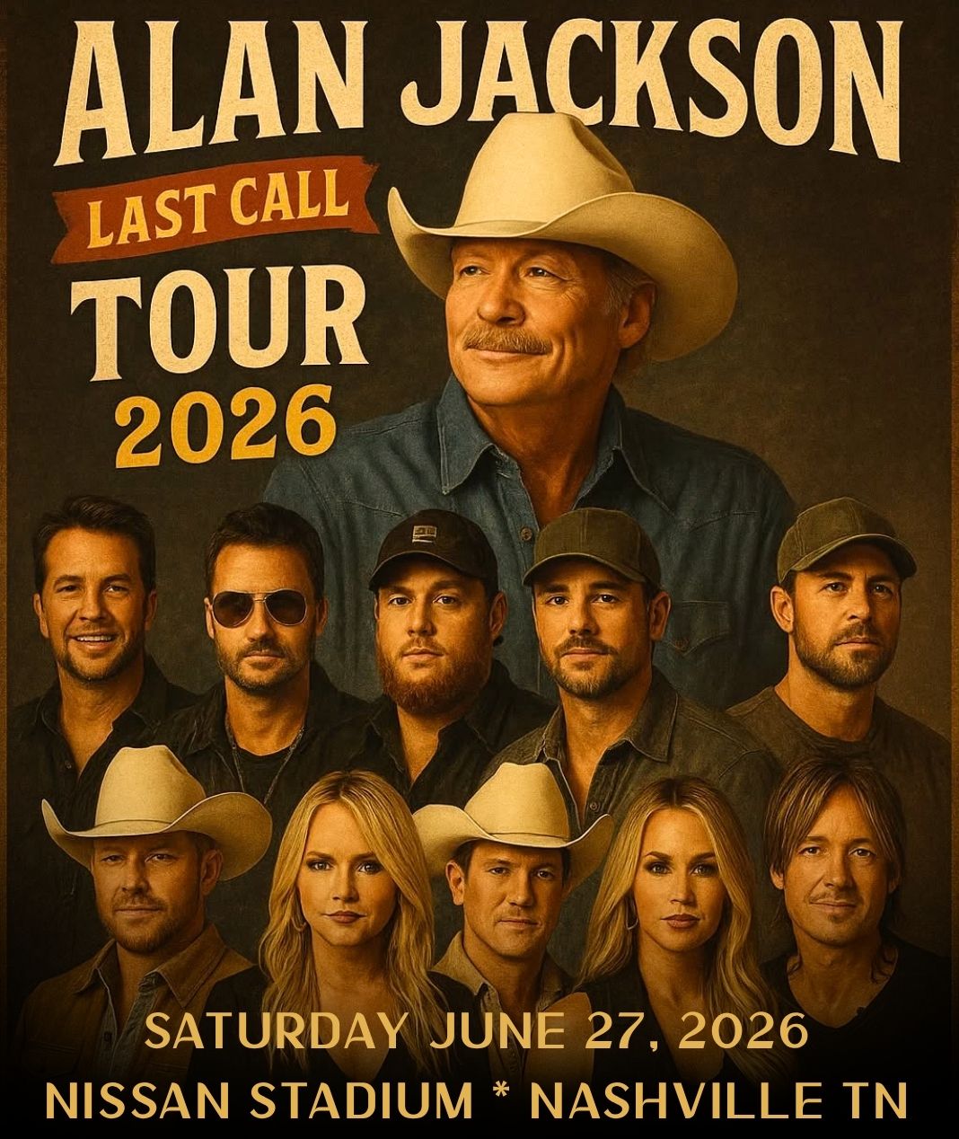 It’s official — Alan Jackson has confirmed what fans had long feared: his final full-length concert will take place on June 27, 2026, at Nissan Stadium in Nashville, Tennessee. The news marks the end of an extraordinary era in country music, as one of its most cherished voices prepares to take his final bow.