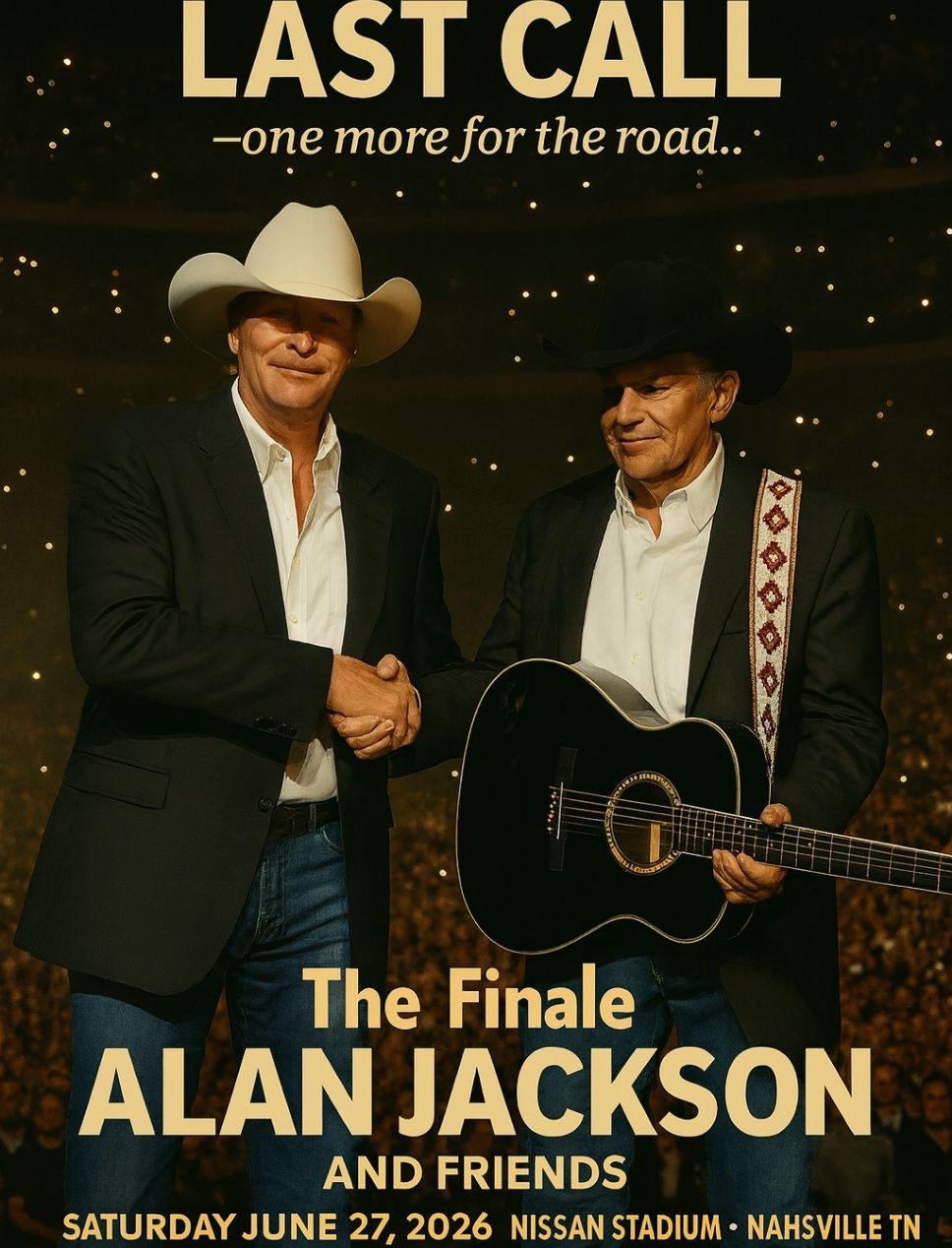 It’s official — Alan Jackson has confirmed what promises to be one of the most unforgettable nights in country music history. On June 27, 2026, the Country Music Hall of Famer will take the stage for his final live performance, the monumental “Finale – Last Call: One More for the Road” concert at Nissan Stadium in Nashville, Tennessee.