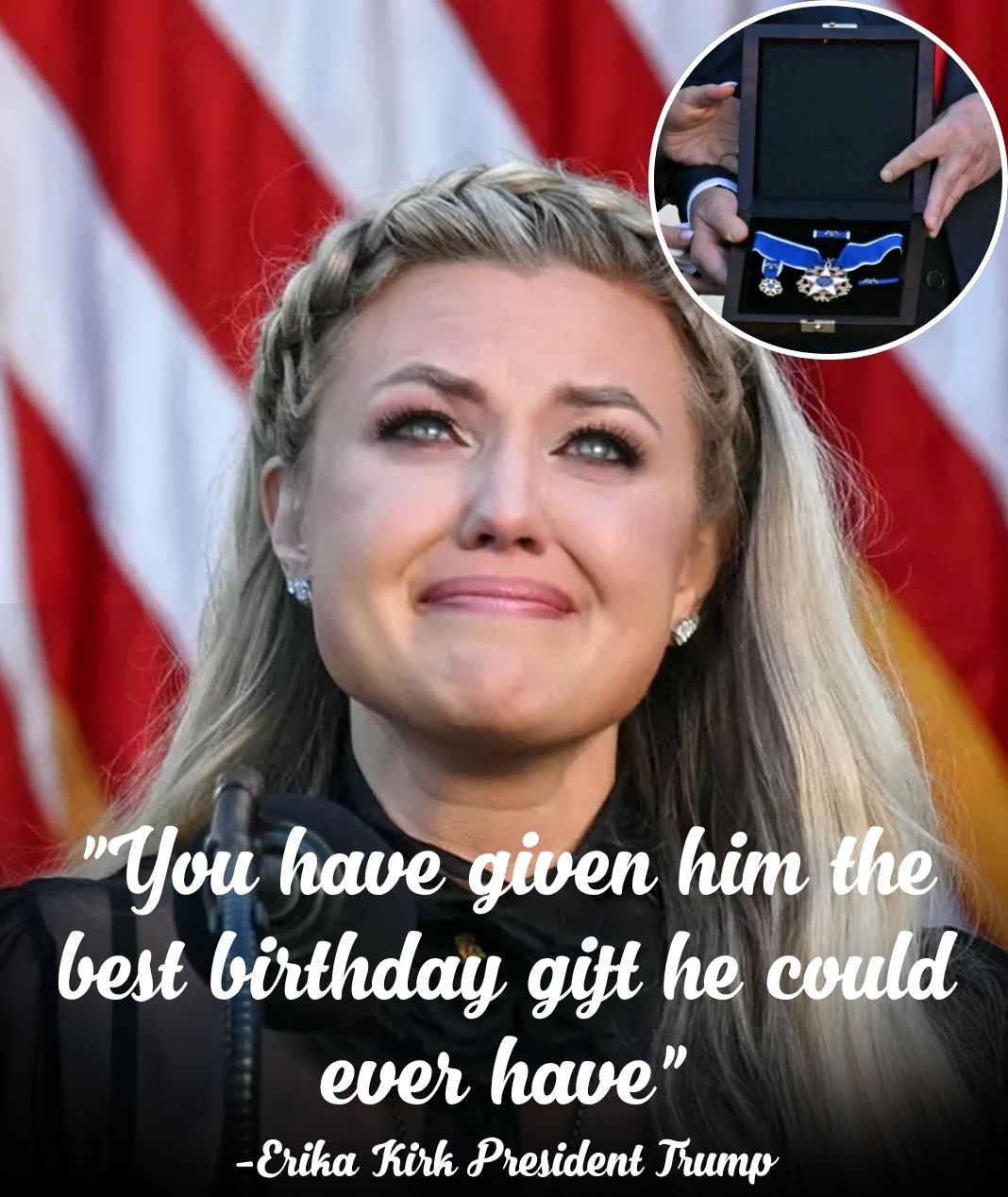 HISTORIC NEWS: Erika Kirk expresses heartfelt gratitude to President Trump for awarding her late husband Charlie Kirk the Medal of Freedom on what would have been his 32nd birthday — calling it “such an honor” and a moment she’ll never forget.