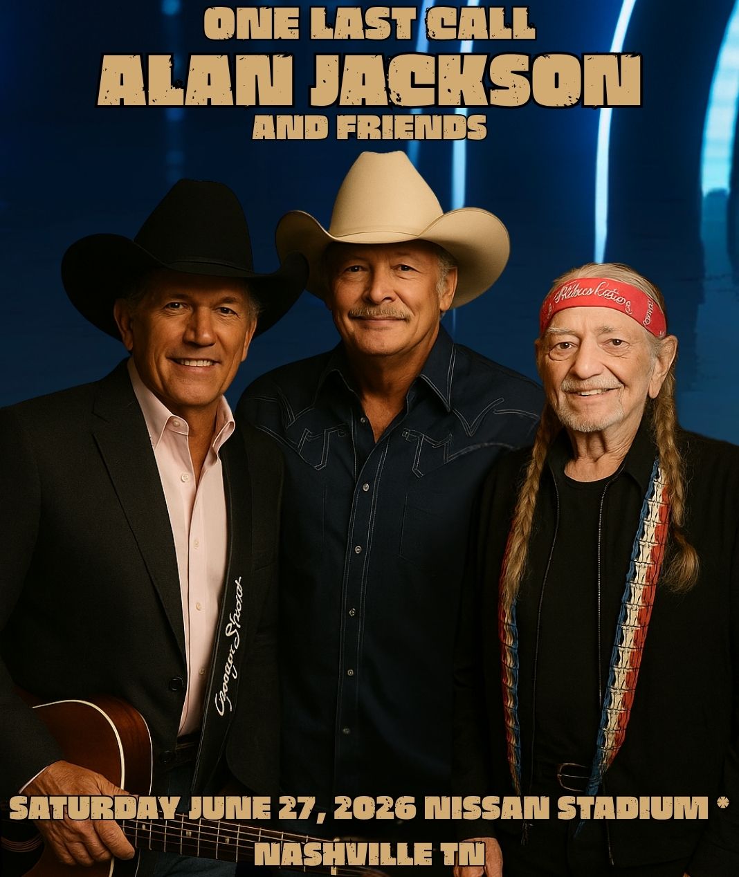 Set for June 27, 2026, at Nissan Stadium in Nashville, Tennessee, the once-in-a-lifetime event will bring together decades of storytelling, friendship, and timeless music. For fans, it’s more than a concert — it’s a farewell gathering of giants, a night that will honor the legacy of three men whose songs helped shape the very soul of country music.