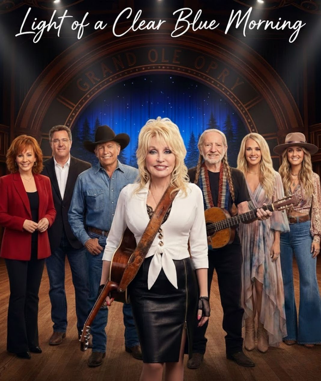 In what many are already calling one of the most emotionally charged moments in modern country music history, Dolly Parton stood surrounded by lifelong friends and musical icons as a deeply personal project was finally revealed. The setting was not a stadium, nor a televised stage, but a quiet, closed-door gathering where emotion carried more weight than spectacle. When the opening notes of “Light of a Clear Blue Morning” filled the room, Dolly could no longer hold back her tears.