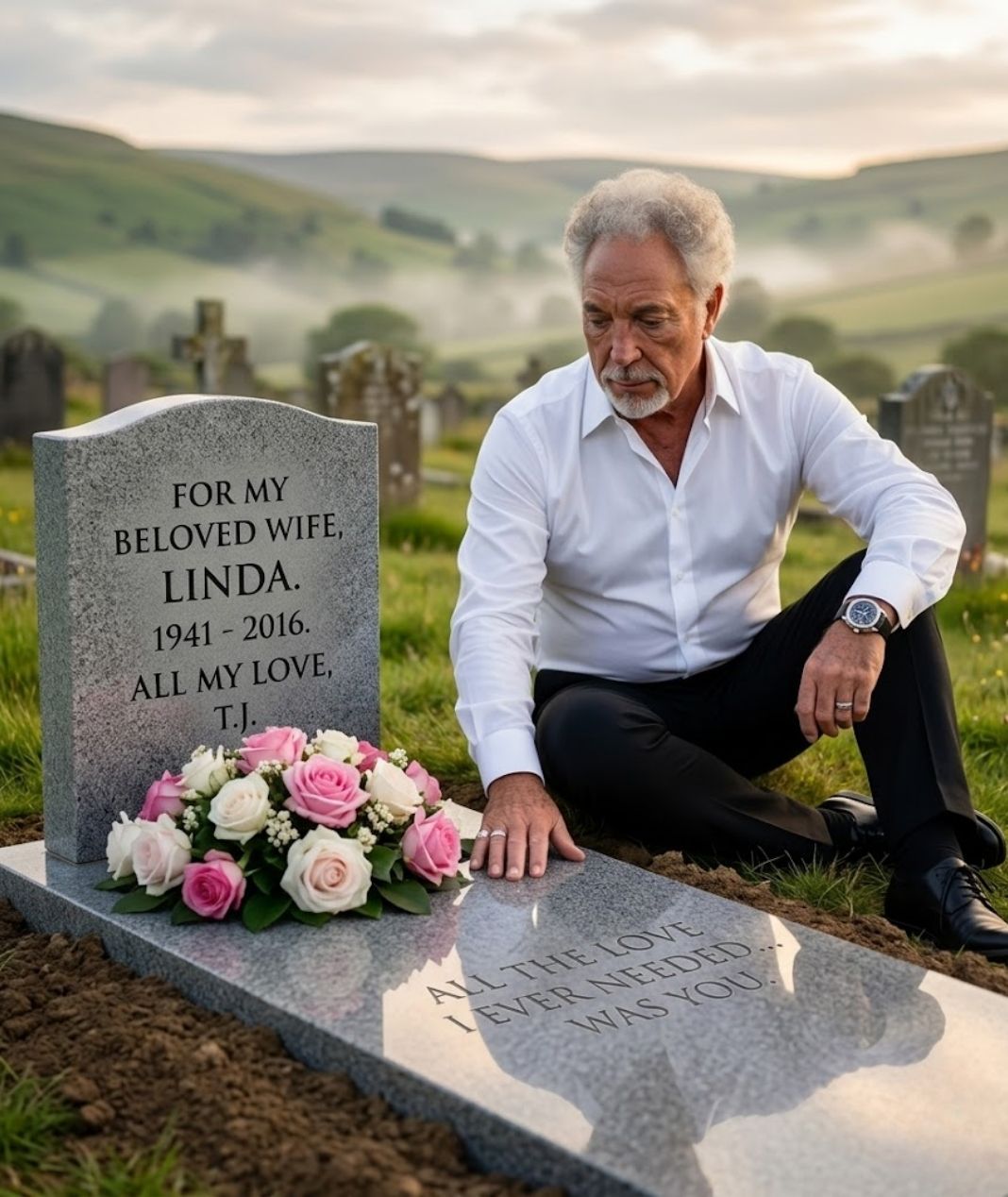 There are moments that are never meant for a stage, never meant for an audience—yet somehow, they carry a weight that reaches far beyond the place where they happen. When Tom Jones stood quietly beside the resting place of his beloved wife Linda Trenchard, what unfolded was not a performance, but a deeply personal act of remembrance, one that transformed silence into something profoundly meaningful.