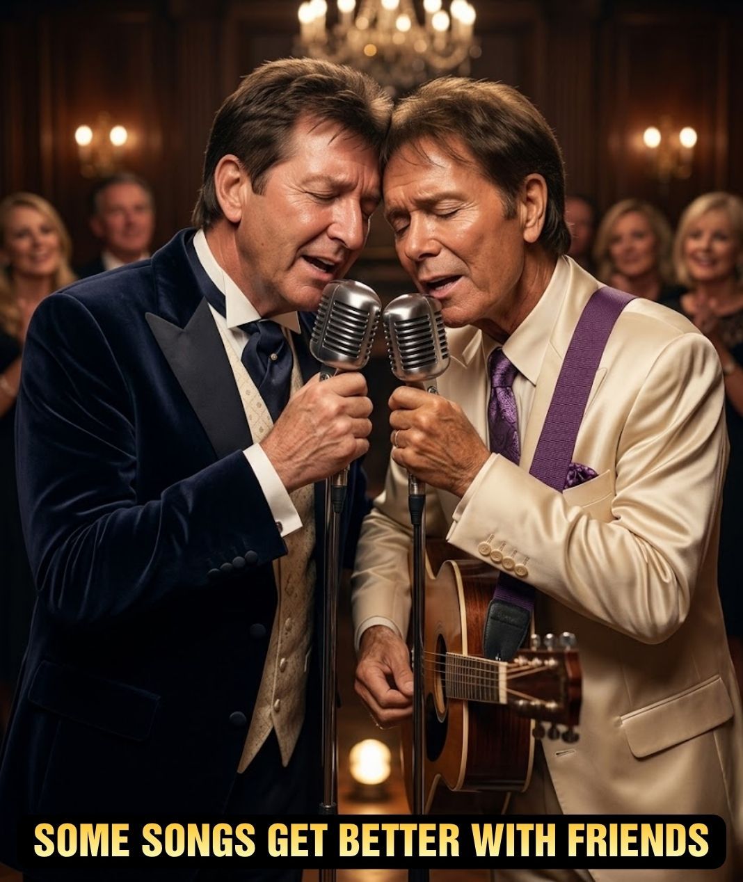As the first notes of Travellin’ Light began, the atmosphere shifted into something wonderfully relaxed. The song, known for its easy rhythm and uplifting spirit, seemed perfectly suited to the moment. When Cliff Richard began the opening lines, his voice carried that familiar brightness that has defined his career for generations. Then, when Daniel O’Donnell joined in, the blend of their voices created something effortless and natural, as if they had been singing together for years.