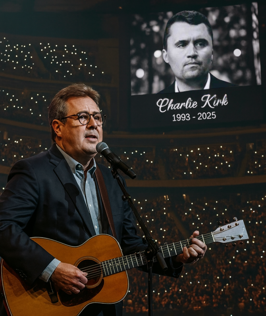 The air was heavy with emotion as Vince Gill stepped onto the stage, guitar in hand, to perform one of country music’s most powerful songs — “Go Rest High on That Mountain.” This time, the song carried a special weight, as Gill dedicated it to the memory of Charlie Kirk, the influential speaker and founder of Turning Point USA, whose recent passing at the age of 31 left millions grieving across America.