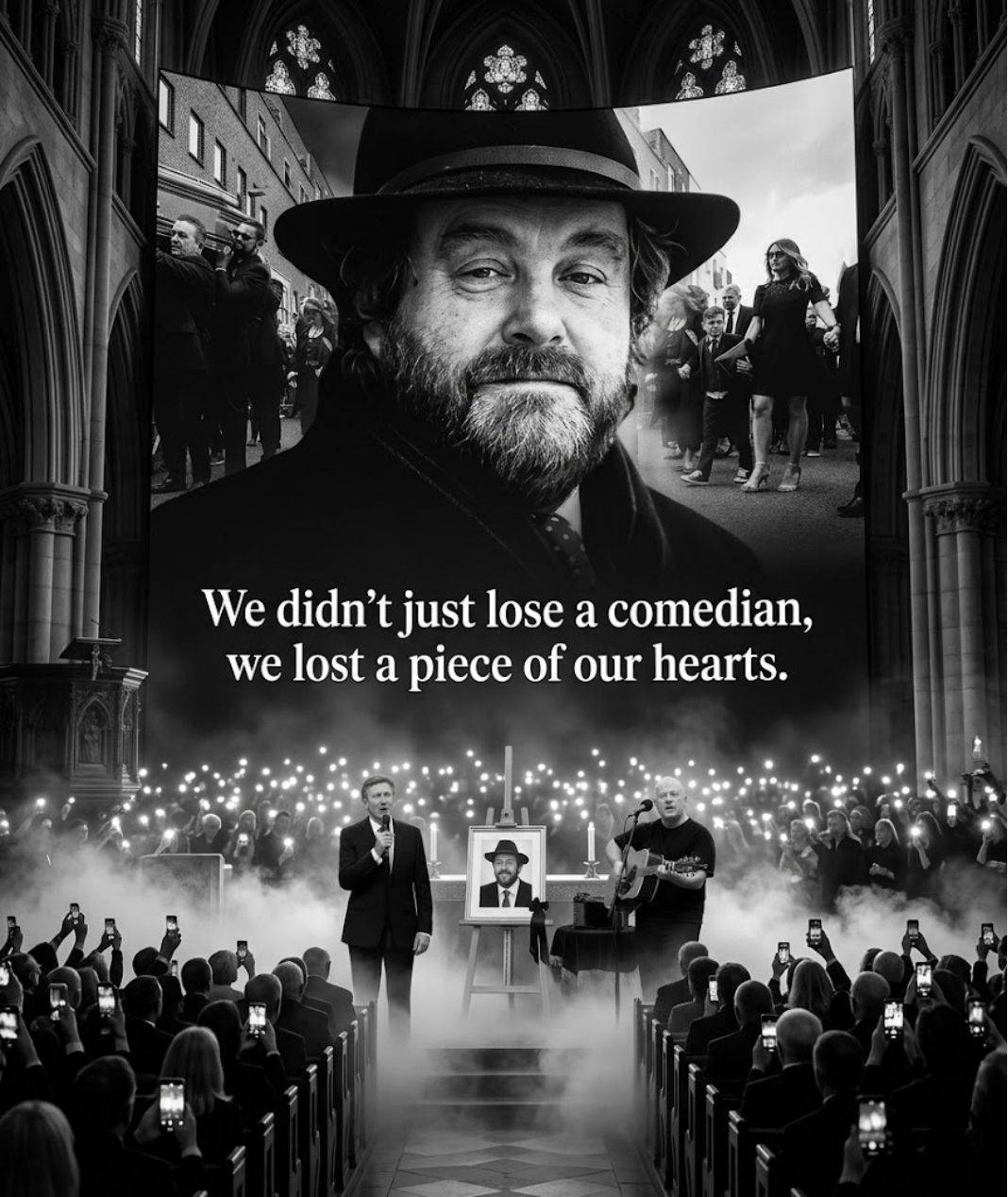 The room was filled with people who had known Brendan Grace not just as a performer, but as a friend, a storyteller, and a man who brought laughter into countless lives. Many had worked with him for decades. Others had grown up listening to his comedy and stories. Some had simply met him once and never forgotten his kindness. The mood was quiet, respectful, but heavy with emotion.