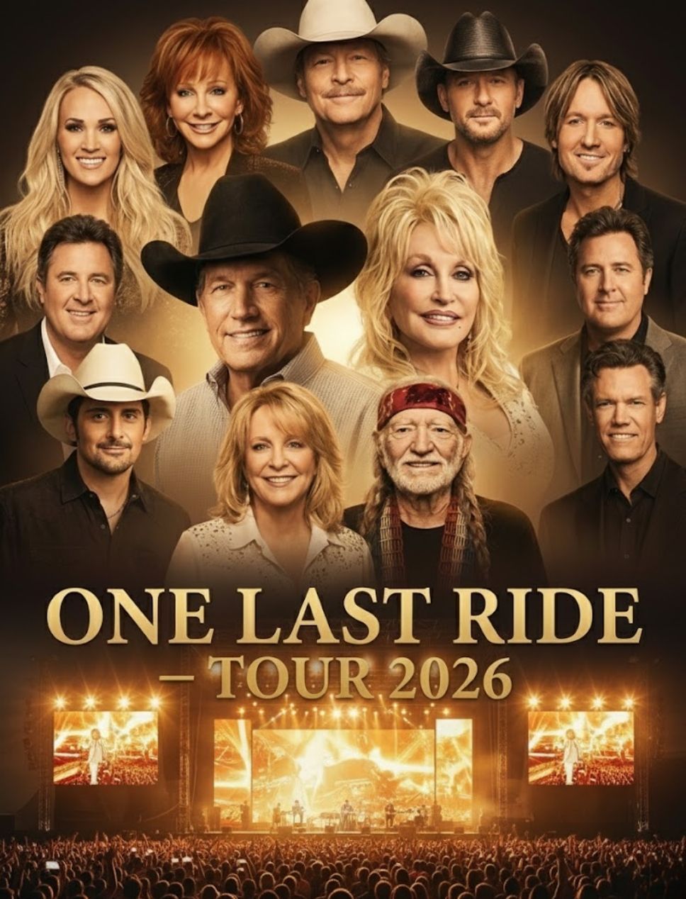 In a world where announcements are often loud and fleeting, some moments arrive with a weight that cannot be rushed. “ONE LAST RIDE” — 2026 is one of those moments. Not because it promises spectacle, but because it carries history. Twelve legendary figures, each a pillar of country music in their own right, now stand together on one stage for a farewell unlike anything the genre has ever witnessed. This is not a reunion designed for headlines. It is a reckoning with time, memory, and gratitude.