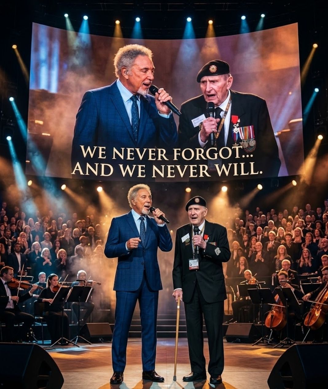 Sir Tom Jones did not begin with a grand introduction. He stood for a moment, looking out over the audience, as if acknowledging not only those present, but those who could not be there — the voices of another time. And then, beside him, a figure appeared: a 98-year-old veteran, carrying not just years, but a lifetime of experience shaped by that very day being honored.