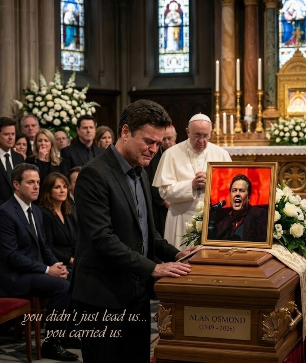 There are moments when even the most familiar voices begin to falter — not from uncertainty, but from the overwhelming weight of memory and love. What unfolded before that grieving crowd was not expected, not rehearsed, and certainly not prepared for. It was a farewell shaped in real time, as Donny Osmond stepped forward to honor the life of his beloved brother, Alan Osmond.